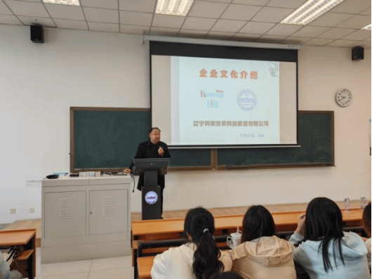 随后,辽宁科硕营养科技股份有限公司的行政总监张梁为同学们带来专题讲座,深入介绍了企业文化和车间工艺流程,让员工对企业运作模式有了更直观的认识。他鼓励同学们把握当下实习契机,夯实专业知识基础;在实践中拓宽视野,实现理论与实践的深度融合;科学规划职业生涯,以持之以恒的态度追求进步。