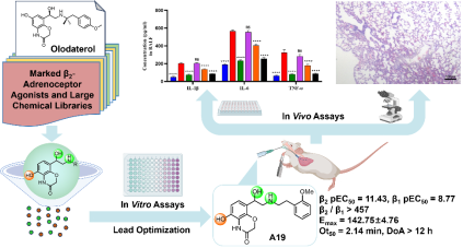 在致力于开发治疗呼吸系统疾病的药物研究中,程卯生教授及其团队通过合理化药物设计和合成过程,成功开发了一系列含有5-羟基-4H-苯并[1,4]噁嗪-3-酮结构片段的分子。经过活性筛选与结构优化,候选化合物A19展现出明显的β2受体激动活性(EC50= 3.7 pM)和高的选择性(β2/β1> 457)。在豚鼠气管平滑肌的离体实验中,表现出显著的松弛效果(Emax= 142.75 %)、快速发挥作用(Ot50= 2.14min)以及持久的作用时长(DoA > 12 h)。此外,化合物A19显示出吸入式给药的体内药代动力学特性,并能有效地在大鼠COPD模型中抑制炎症细胞及炎症因子的上调,显著改善肺功能。这些结果表明,A19作为一种新型β2激动剂的候选化合物,具备进一步研究与开发的巨大潜力,为呼吸系统疾病的治疗提供了新的方向。