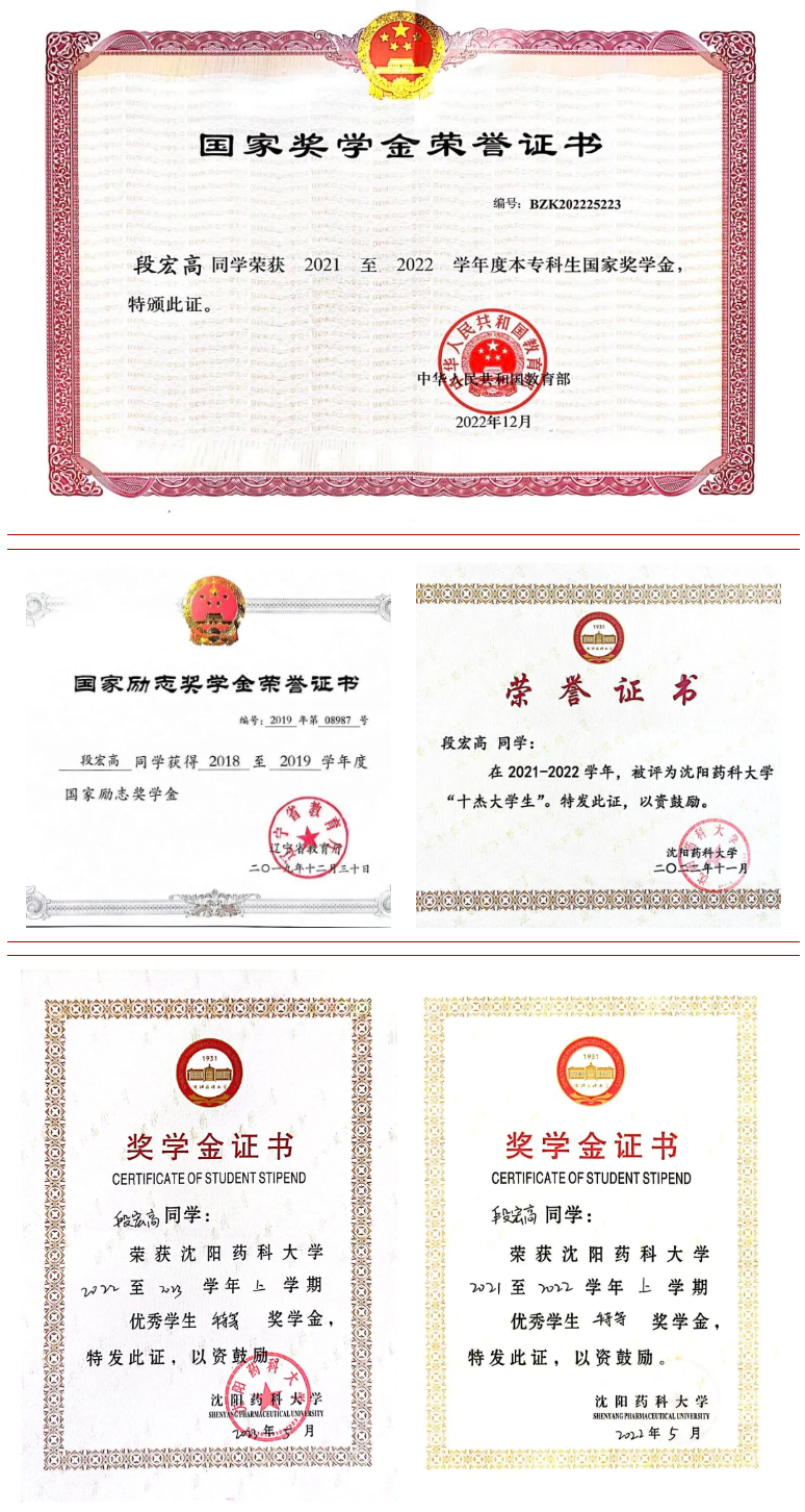 本科阶段的学习让段宏高同学对更深层次的药学领域充满着向往,在保研为北京大学药公司直博生(拟录取)后,段宏高同学表示自己将会在未来的学习生涯中勤奋学习、积极思考、刻苦钻研、投身科研,掌握过硬本领,接过我们这一代人推动药学发展的接力棒,在这片没有硝烟的战场实现自己作为一名退役军人的人生价值,为往圣继绝学,无愧于自己曾经的戎装和国旗下的铮铮誓言。