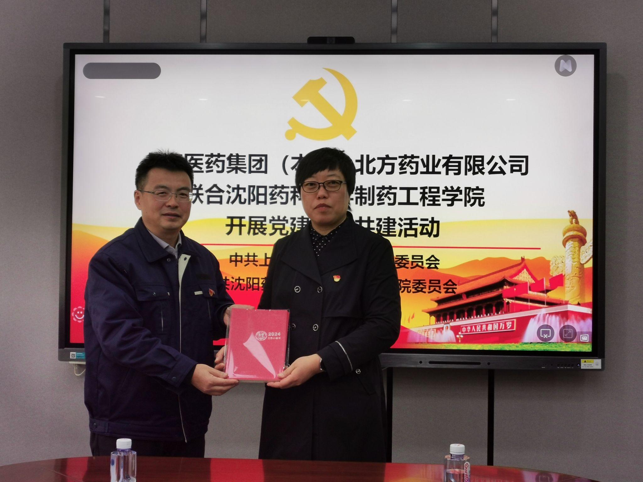 公司党委书记李哲代表公司向企业党支部赠送了定制的办公用品。