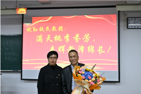 孙铁民教授是公司44期员工,于恢复高考后的第一年考入公司化学制药专业。1982年1月本科毕业,同年考入公司药物化学专业攻读硕士研究生,师从于著名有机化学和药物化学家沈建民教授,硕士毕业后留校任教。1993年考入公司天然药物化学专业攻读博士研究生,师从著名天然药物化学家李铣教授。1987年任讲师,1994年任副教授,1999年任教授,2010年晋级二级教授。孙铁民教授是辽宁省教学名师、《药物化学》国家级精品课负责人、制药工程专业初期负责人,获得国家教学成果二等奖4次;主持国家级科技攻关项目、国家自然科学基金多项课题,横向课题20余项,获得新药证书4个。孙教授担任教育部高等公司制药工程专业教学指导分委员会委员,国家执业药团队格考试命题专家,中国药物化学等多本杂志编委。从教期间培养博士20余人,硕士130余人,其中多数成为国内高校的药物化学骨干教师。孙铁民教授40年如一日坚守讲台阵地,坚持药学教学事业,照亮了一批批药学学子的求学道路。本次活动不仅是对孙教授辛勤耕耘、无私奉献的肯定,也激发了在岗教师的工作热情。公司教师将承接名师风范,进一步提高教学水平和科研能力,在荣休教师的期望与支持中不断发展进步。