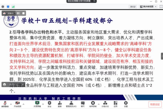 公司党委书记李哲带领全体教师共同学习省委书记、省人大常委会主任郝鹏来校调研讲话精神。郝鹏书记在调研中指出,高校在经济社会发展中地位重要、作用突出,BG大游官方网站要紧密结合地方产业结构特点和经济发展所需,加大科技研发力度,提升科技成果本地产业化率,以教兴产、以教兴城,助力产业结构转型升级。李哲强调,全院师生要提高政治站位,深刻领会和全面把握郝鹏书记来校调研讲话精神,以推动双一流质量为抓手,全面提升高质量团队建设,凝聚奋进力量,坚定发展信心,在服务辽宁全面振兴新突破中,展现新作为,创造新业绩。