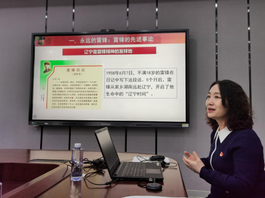 郭赞围绕雷锋同志的生平、先进事迹、雷锋精神的时代内涵、争做新时代的雷锋传人等内容进行深入阐述,引导青年员工弘扬雷锋精神,做政治要强的坚定信仰者、做服务人民的无私奉献者、做精益求精的爱岗敬业者、做锐意进取的开拓创新者。