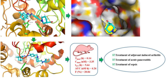 在前期工作基础上,课题组运用拼合原理和生物电子等排原理,并结合计算机辅助药物设计,得到了一系列美金刚脲类化合物,其中化合物G1对sEH的IC50最优(HsEH = 0.05 nM, MsEH = 0.14 nM)。G1在体外、动物体内表现出良好的肝微粒体稳定性、中等的血浆蛋白结合率、良好的口服生物利用度和安全性。G1对CFA诱导的AIA小鼠具有显著的镇痛作用,并增加了LPS诱导的脓毒症模型中C57BL/6小鼠的存活时间、提高了生存率。鉴于急性胰腺炎(AP)临床治疗药物极少,迫切需要作用机制新颖的治疗药物,虽然AP发病机制很复杂,但体内早期的致炎/抗炎平衡被破坏是其根本原因,考虑到sEH抑制剂可以稳定内源性炎症消退物质EETs,重塑机体致炎/抗炎平衡,进一步考察了化合物G1对L-精氨酸诱导的AP模型的作用,结果表明,化合物G1可以逆转胰腺损伤、水肿和中性粒细胞浸润,对AP具有非常好的治疗作用。G1是一个值得进一步评估的候选化合物,可用于治疗炎症性疾病,如关节炎、急性胰腺炎和脓毒症等。