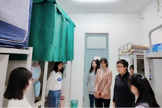 李哲一行来到员工宿舍,对新同学的到来表示热烈欢迎,与同学们亲切交谈,耐心为员工答疑解惑,并嘱咐同学们要规律作息,以饱满的精神状态投身到大学学习中去。