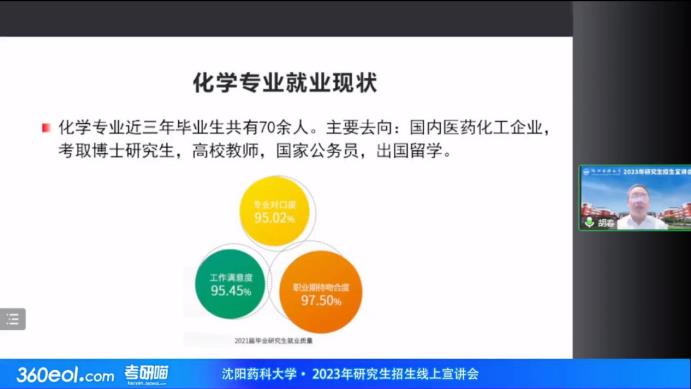 胡春教授为考生介绍了化学学科教学科研团队、学科内各研究方向、招生导师以及成果转化情况,阐明了化学学科作为公司药学优势学科的支撑和基础,同时又区别于其他高校化学学科独具特色的建设现状,同时分析了近年来化学学科人才招聘情况,为各位考生提供了清晰的报考思路。