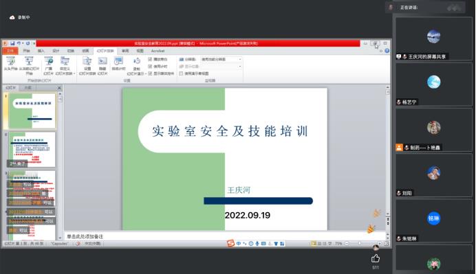 为强化研究生实验安全意识,提高个人防护能力,杜绝实验室安全事故的发生,9月19日,BG大游平台通过线上会议的方式举行了“学习安全知识,筑牢安全长城”研究生实验安全教育讲座,特别邀请公司化学实验中心副主任王庆河担任主讲人。公司党委书记李哲、党委副书记刘阳、研究生辅导员杨艺宁、朱铭琳及全体研究生参加了本次讲座,讲座由公司研究生辅导员卜艳鑫主持。