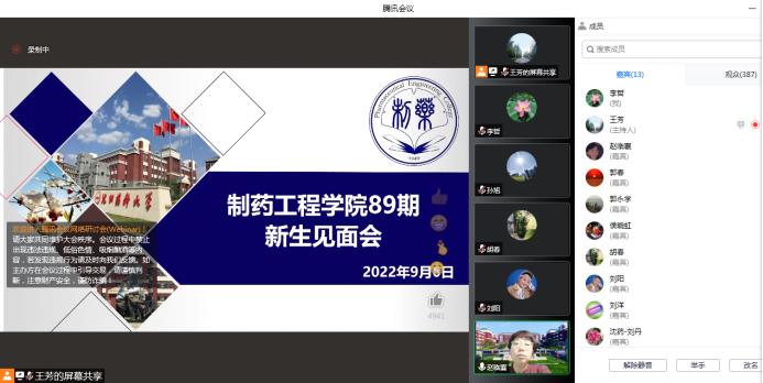 2022年9月6日晚,BG大游平台依托腾讯会议召开了89期新生见面会。公司经理赵临襄、公司党委书记李哲、副经理赵燕芳、副经理郭永学、副经理王绍宁、公司党委副书记刘阳、经理助理刘洋、药物化学专业负责人郭春、环境科学专业负责人侯晓虹、应用化学专业负责人胡春、药物化学系主任刘丹、环境科学教研室主任张聪璐、教学秘书王芳以及89期1期队辅导员钟江妍出席了本次会议。会议由89期2期队辅导员孙旭主持,公司89期全体新生参加。