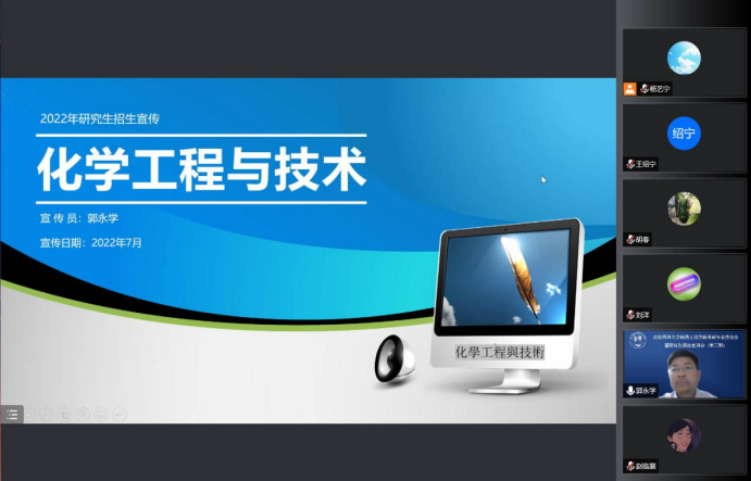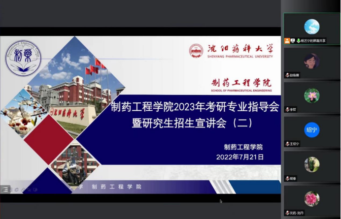 本次会议邀请了药物化学系主任刘丹教授、制药工程学科副主席刘洋教授、化学学科主席胡春教授、化学工程与技术学科副主席郭永学教授进行了对应分科的招生宣讲,从专业角度为有考研意愿的同学带来权威的考研解读,为考生们线上答疑解惑,助力同学们考研方向选择。同时,会议特别邀请了研究生院学位管理科科长杨亚明老师为参会同学做出招生政策方面的解答。公司领导班子全体成员参加了本次会议,会议由研究生辅导员杨艺宁主持。