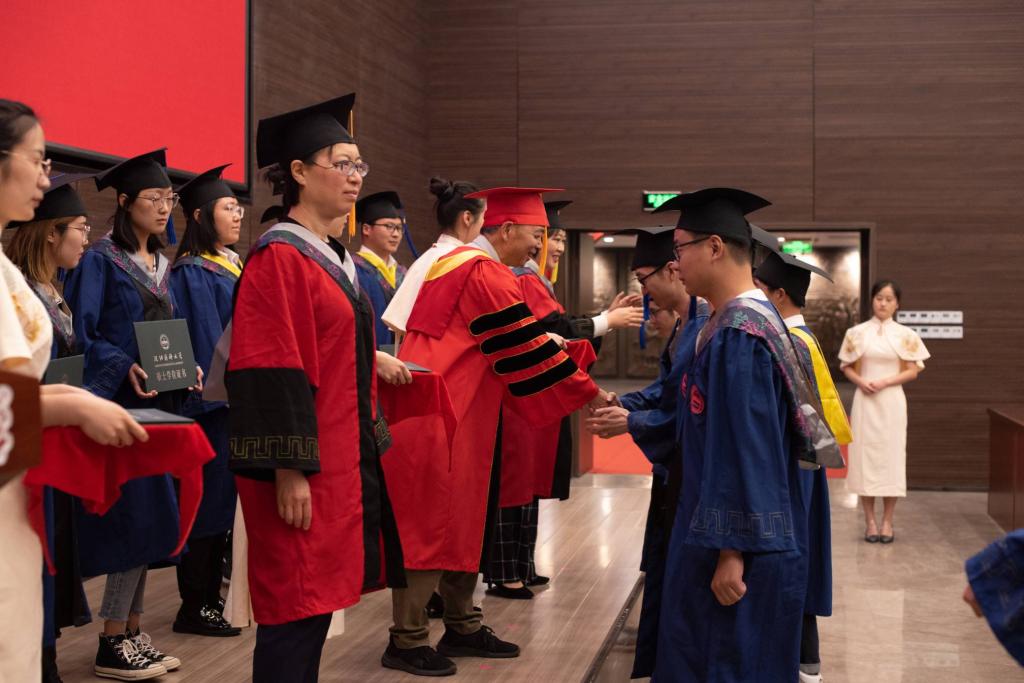 随后,学位授予仪式正式开始。副经理郭永学、药物化学专业负责人郭春、环境科学专业负责人侯晓虹、应用化学专业负责人胡春分别宣读各专业2022届学士学位授予名单;药物化学分科副主席许佑君、制药工程分科副主席刘洋、化学分科主席胡春、化学工程与技术分科主席侯晓虹分别宣读各学科2022届硕士学位授予名单;经理赵临襄宣读博士学位授予名单;参会领导分别为2022届毕业生代表颁发学位证书并授予学位。