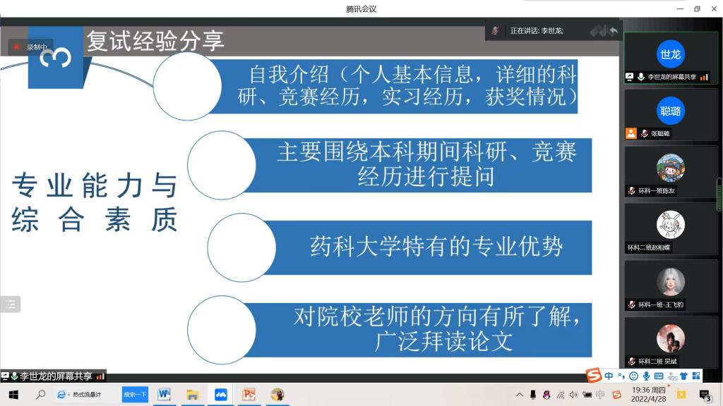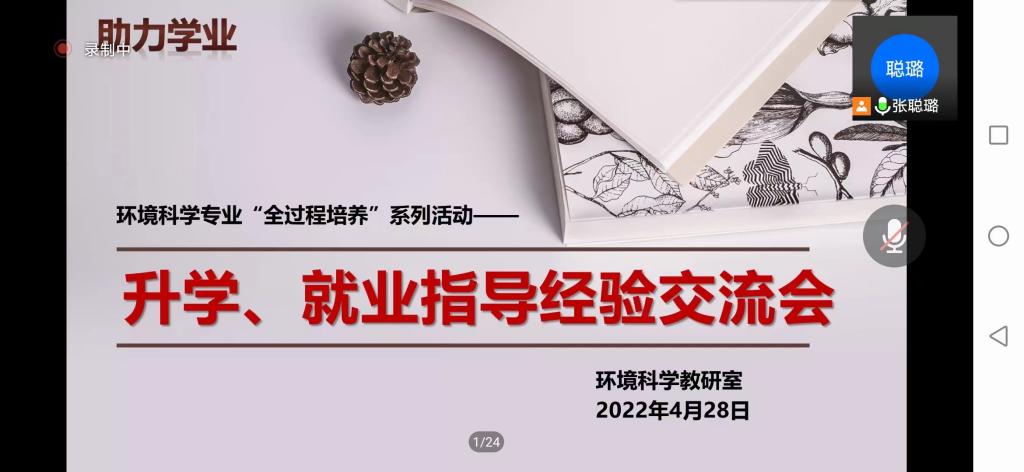 4月28日晚,BG大游平台环境科学教研室在线上举办了一年一度的环境科学专业升学、就业指导经验交流会。本次会议邀请了公司环境科学专业负责人、化学工程与技术学科主席侯晓虹教授做公司环境相关硕士专业介绍,同时邀请85期(2018级)7名保研、考研和就业的优秀员工代表做升学和就业的经验分享。环境科学专业大一至大三的员工、环境科学教研室全体教师共130余人参加了此次分享会。会议由环境科学教研室主任张聪璐主持。