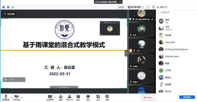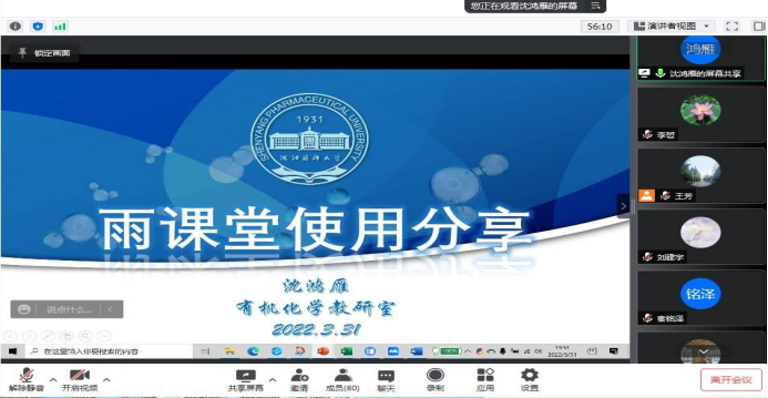 为帮助公司教师更加全面掌握线上教学软件的使用方法,提高线上教学效果,保障疫情期间本科教学质量,3月31日,BG大游平台举办雨课堂使用线上培训会,本次培训会特请药物化学教研室侯云雷老师和有机化学教研室沈鸿雁老师进行经验分享,院领导班子成员、公司教师参加了会议,会议由副经理郭永学主持。