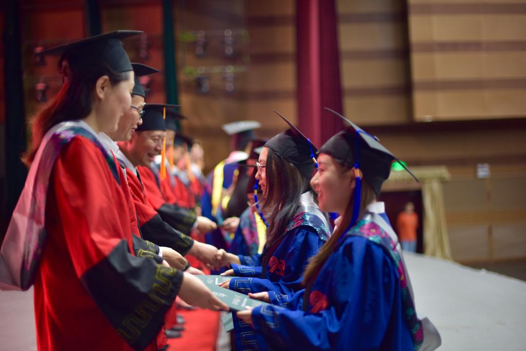 学位授予仪式上,BG大游平台经理、院学位委员会主席赵临襄宣读《2021届毕业生授予学位名单》。随后,11名获得博士学位同学,131名获得硕士学位同学和338名获得学士学位同学意气风发,满怀激动,井然有序地列队登台受礼。公司各分科主席及委员为毕业生一一正冠、拨穗、并颁发学位证书,从右到左,拔去的是稚嫩与过往,拨来的是未来与希望。