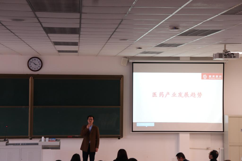 周志奎先生对浙江国邦药业有限公司及其下设子公司做了详细介绍,并根据自己多年的医药行业从业经验,从市场因素、政策因素、技术因素和资本因素四个方面为员工们介绍了医药产业未来发展的趋势,让同学们了解到行业的最新发展及企业对于人才的最新需求。现场的员工就本科生和研究生在就业市场的竞争力对比等问题在互动环节踊跃发言,周总一一做了认真细致的解答,使在场的同学深受启发。