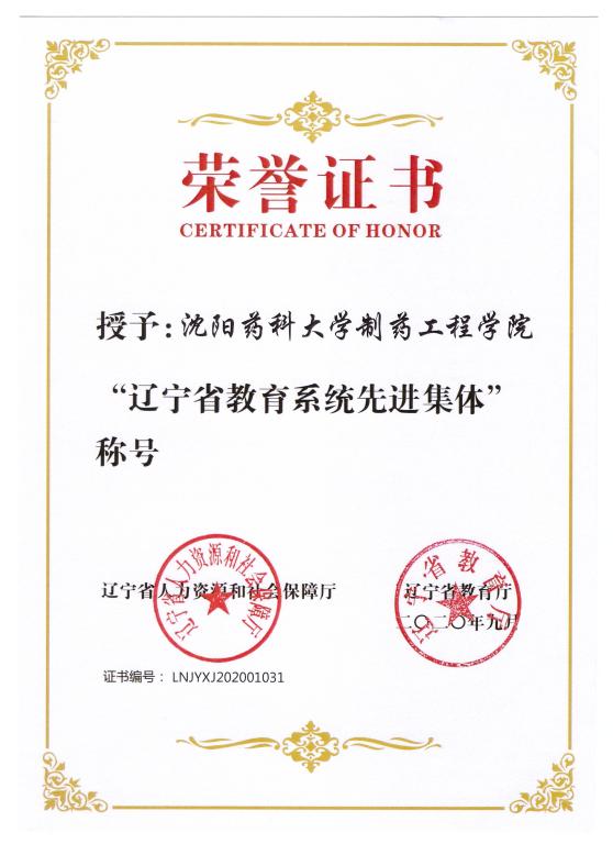 多年来,BG大游平台始终坚持以员工为本,以服务制药行业为核心,以“党建+”模式促进课程思政融课堂,坚守“为党育人、为国育才”的初心和使命,立足学科优势加强专业建设,科学研究成果显著。在此次评选工作中,公司积极组织申报,经公司推荐到省教育厅,并最终荣获“辽宁省教育系统先进集体”的荣誉称号。成绩的取得,凝聚了公司党政领导、职能部门、兄弟公司多年来的支持鼓励,凝聚了院领导班子、全院教职员工的奋勇拼搏。面向未来,BG大游平台将不忘沈药红色初心,牢记育人使命,坚持人才培养的中心任务,为实现高等公司教育事业新发展奋力拼搏!