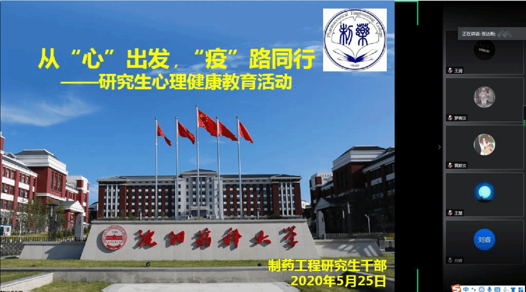 本次活动旨在引导同学保持心灵阳光,热爱生活、珍惜当下、感恩拥有。活动主要分为两部分。首先,由2019级硕士研究生党支部围绕疫情影响下,研究生典型的心理健康问题以及应对负面情绪我们可以采取哪些措施做了一期主题为——从“心”出发,“疫”路同行,居家云科研,我们这样做!的微信推送。让同学们坚定战“疫”信心,安心在家“云”科研,共识青年人的责任,谱写沈药人的担当。