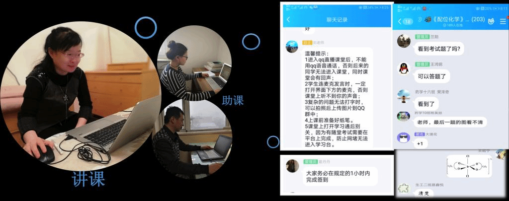 为了保证《配位化学》课程的顺利进行,团队采用课前试课、课中助课,实现直播与超星平台的完美结合。在周密安排和精心准备下,开学第一天的5-8节,团队教师通力协作,主讲教师刘迎春副教授顺利完成首次课程直播,直播课堂井然有序,教师声音画面清晰,师生互动及时,赢得了员工的肯定和点赞。