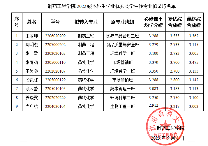 根据《BG大游官方网站本科员工学籍管理规定》(沈药大教务字〔2019〕59号)、《BG大游官方网站本科生转专业实施办法(试行)》(沈药大教务字〔2018〕34号)的有关规定。经员工自愿报名、转出公司审核、转入公司复试考核等工作程序,现将公司2022级本科生学业优秀类员工转专业拟录取名单公示,公示期三天,截止到2023年9月3日16:00。