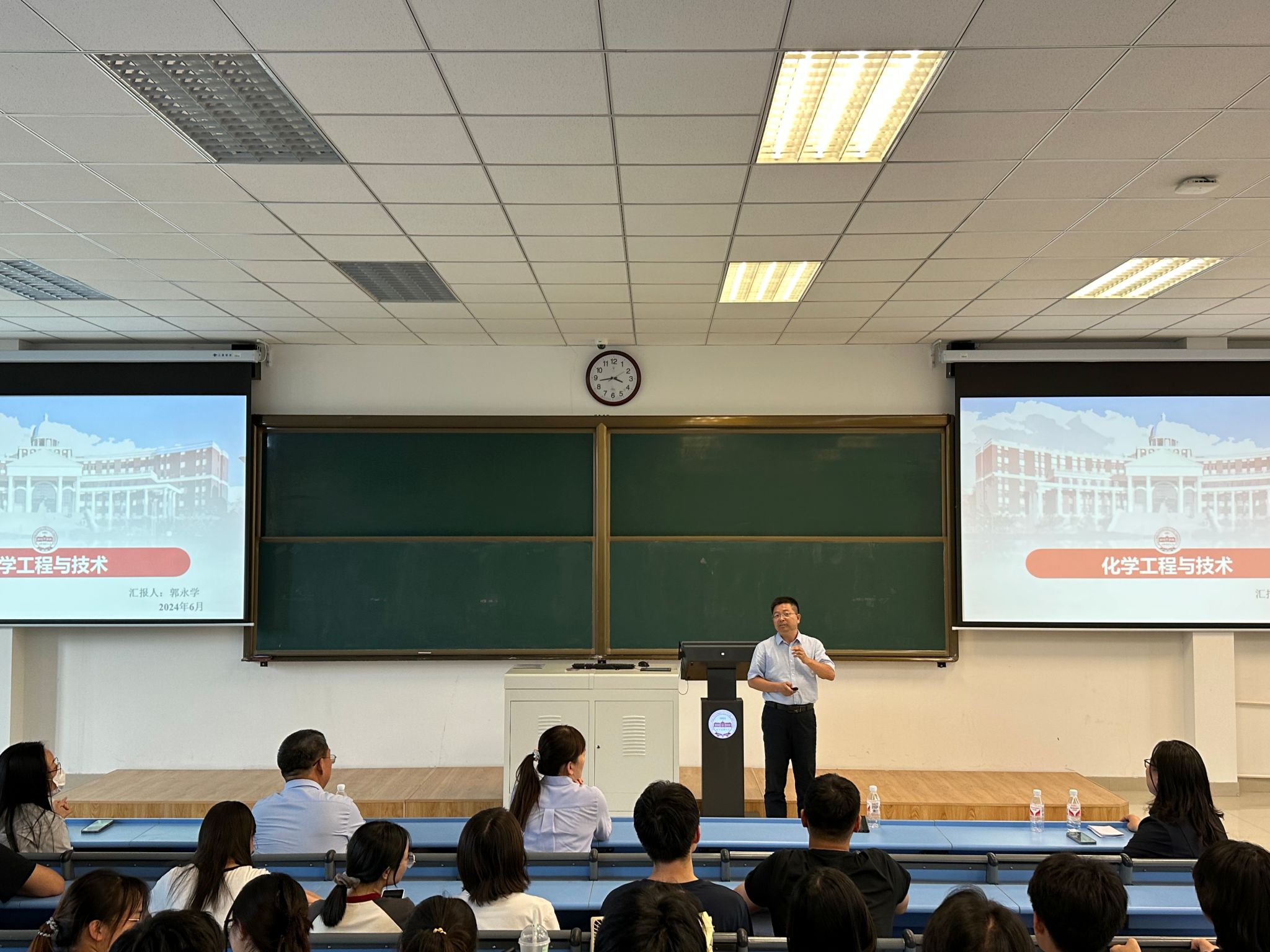 本次宣讲会邀请了校研究生院经理、药物化学学科主席翟鑫教授,公司经理、制药工程学科主席刘洋教授,副经理、化学工程与技术学科主席郭永学教授,化学学科前负责人胡春教授进行对应分科的招生宣讲,从专业角度为有考研意愿的同学带来权威的考研解读,同时邀请了公司党委副书记武晓娜为参会同学做出招生政策方面的解答,助力同学们考研方向选择。宣讲会由副经理王绍宁主持。
