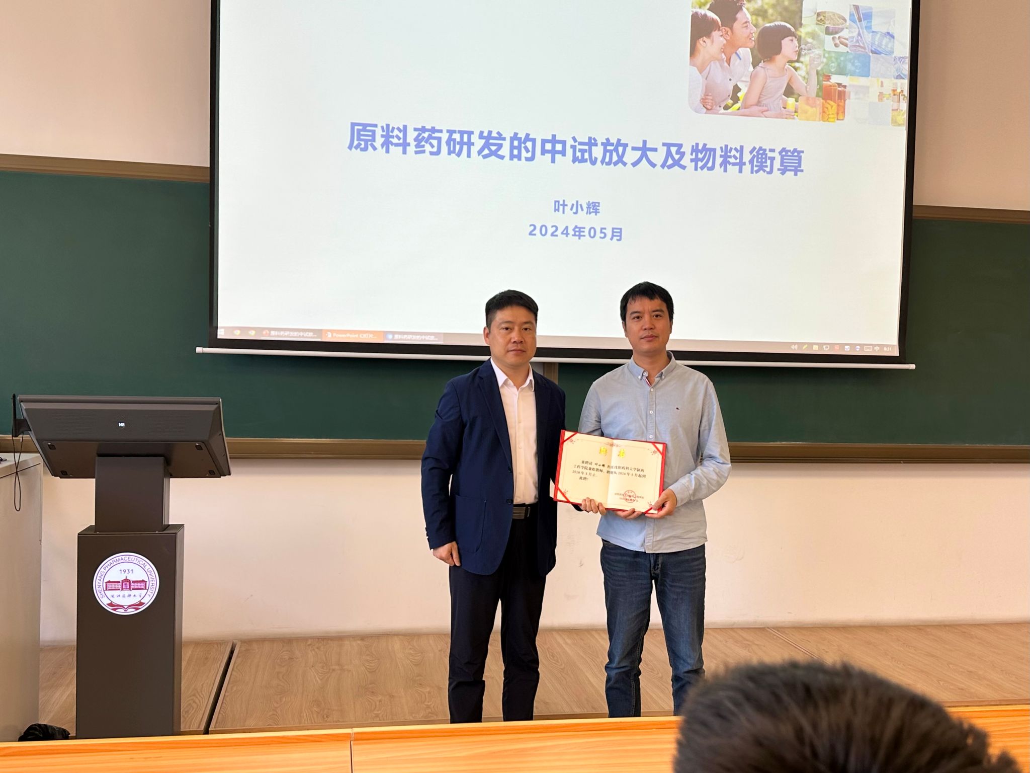 5月28日,BG大游平台聘请上海医药集团(本溪)北方药业有限公司高级工程师叶小辉为兼职教师,并给88K制药工程专业的同学们进行《化学制药工艺学》课程授课,公司经理刘洋、副经理刘丹共同聆听了课程。