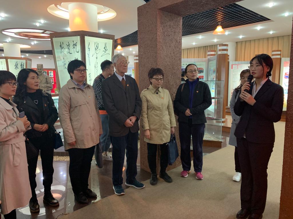 随后,王圣符教授与公司师生共同参观校史馆。校史讲解员结合珍贵的文史资料与照片,就沈药历史脉络、发展历程、人才培养情况、教学教研成就等内容做详细讲解。王圣符教授根据自身经历,为公司师生介绍了沈药的发展历程和沈药校歌、校训背后的故事。通过实地参观,公司师生再次感受到一代代沈药人的进取拼搏与奋斗担当,深入理解了沈药“团结、勤奋、求实、创新”校训的真谛,更深刻理解自身应有的责任担当,我们不仅是公司历史的见证者,更是公司发展的建设者。