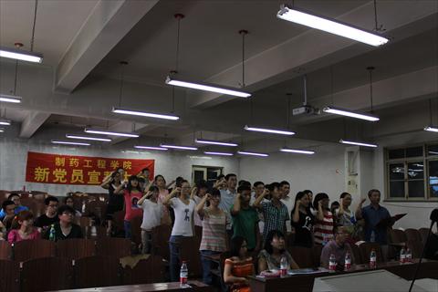 为了喜迎中国共产党建党九十三周年,进一步增强员工党员的党性意识,制药工程学分党委于7月1日中午,在四阶教室,隆重举行了新党员入党宣誓仪式。分党委副书记刘玉成,分党委组织委员、化学实验中心副主任赵翔,公司团委书记张雷以及各员工党支部书记出席了宣誓仪式;32名员工党员参加了仪式;仪式由分党委兼职组织员张达盼主持。